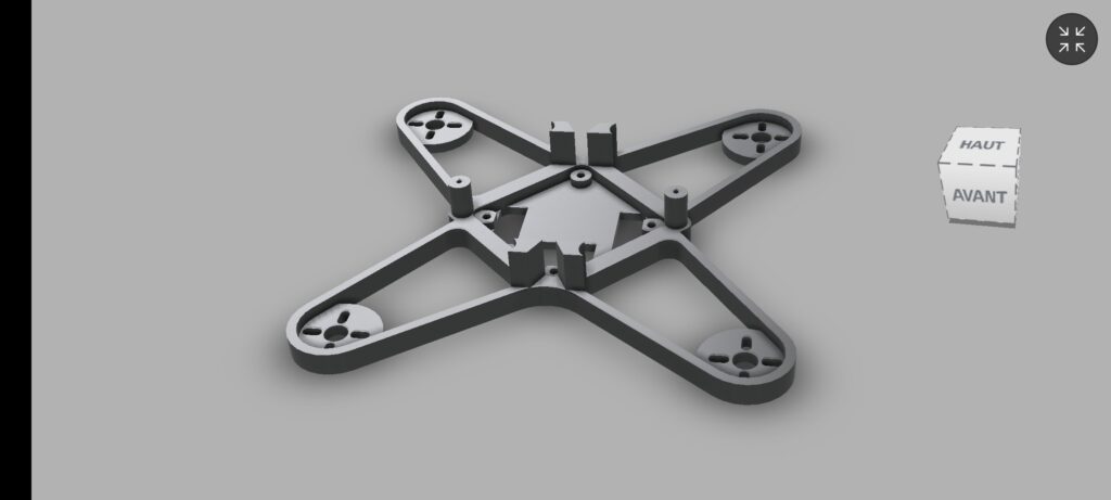 Après s’être pris une boite en métal de 450 kg (quelle idée de barrer la route à un aussi petit truc en pleine course… ^^), il a fallu changer la FC. J’ai donc choisi une AIO 2-4S de chez betafpv, mais malheureusement… le form-factor ne correspondait plus à la frame plastique. Après quelques essais de passage en force, j’ai décidé de partir dans la conception d’une frame pas chère, facile et pas trop longue à imprimer (et réimprimer…), et… que j’aurais la joie de concevoir de A à Z.
